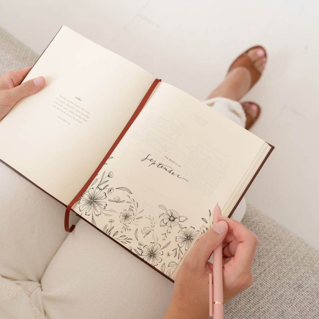 This 12-Month Undated Layflat Planner features Hosanna Revival’s beautiful Yorkshire design. We designed these to fit seamlessly into your life—no matter when or how you plan.