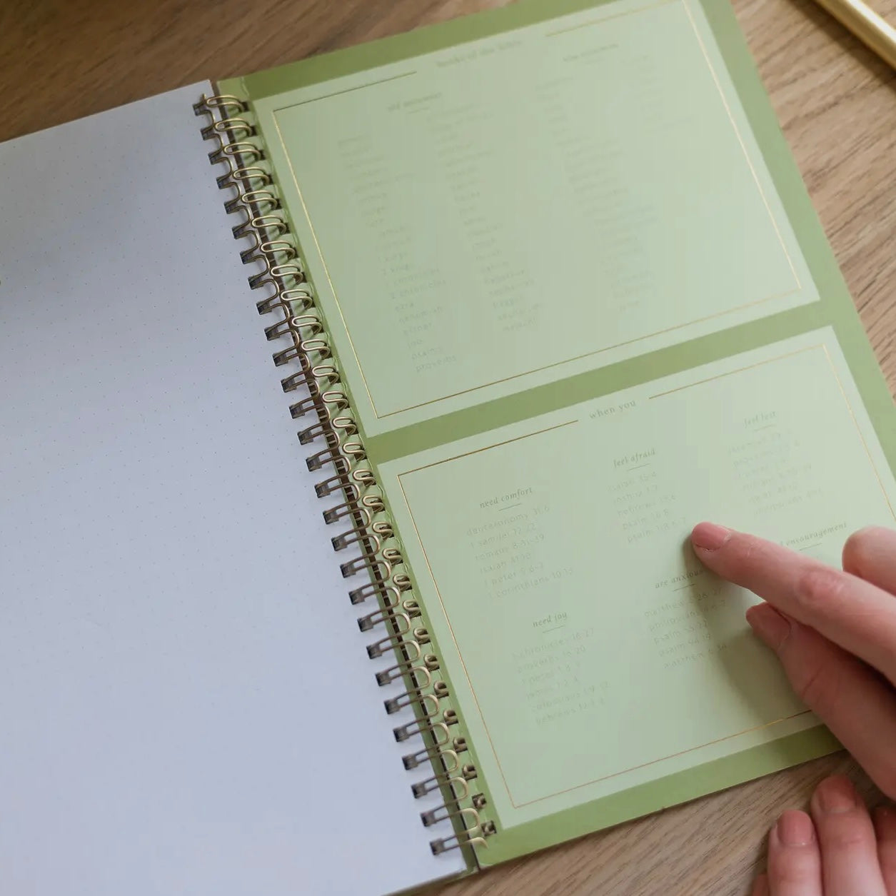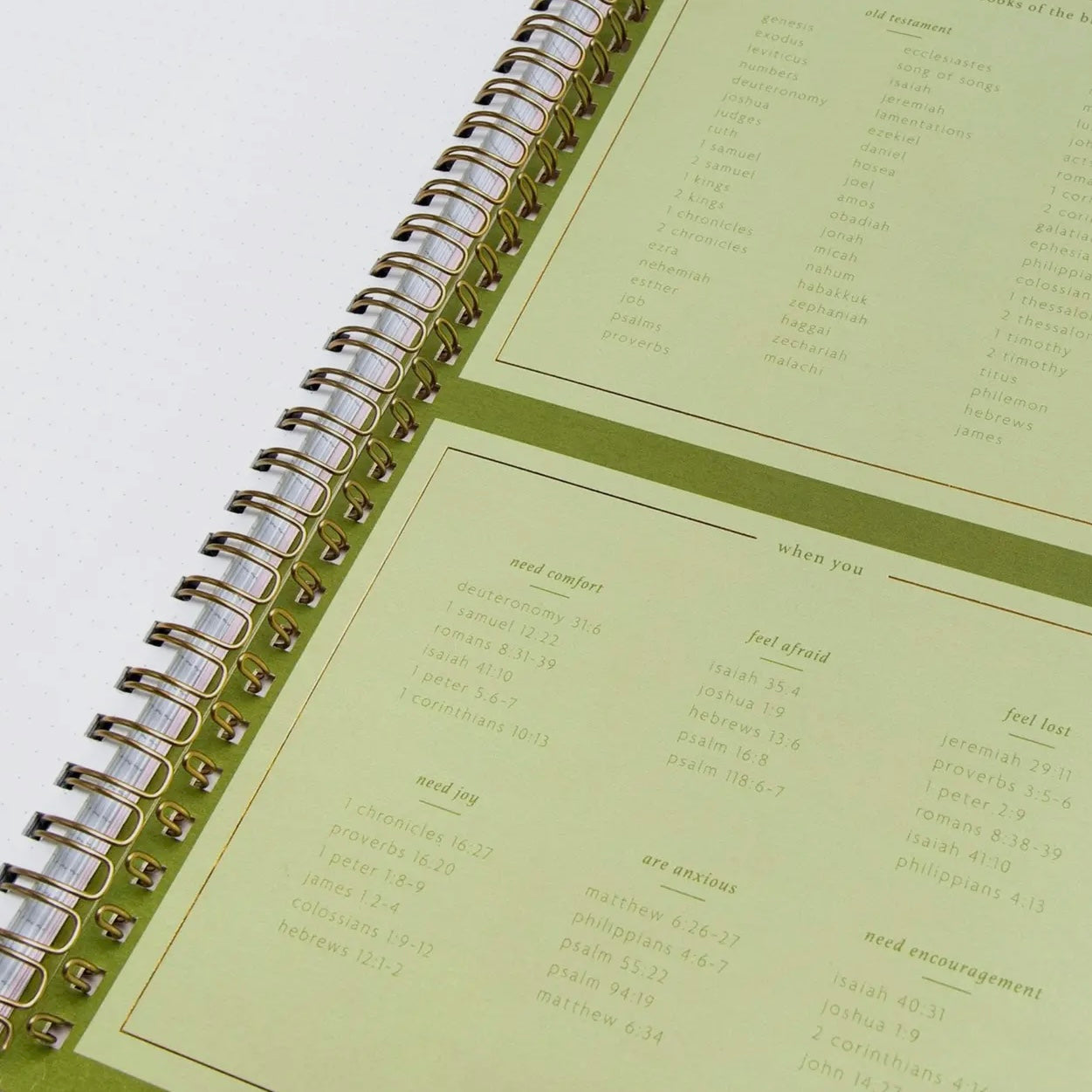 Made for taking sermon and lesson notes in church, bible study or small group, this foiled, hard cover, spiral-bound notebook was created to celebrate faith. With plenty of space for worship notes in its 150 lined pages and dedicated areas to note the date, speaker, message, and relevant verses as well as dot grid space on the back of each page, a double-sided interior pocket, and three verse art print pages, it's the perfect confirmation, Easter or Christmas gift. Intended to aid in worshipping Christ, this journal is a staple for Christian book stores and gift shops, fostering a love for scripture and encouraging new growth in Jesus.