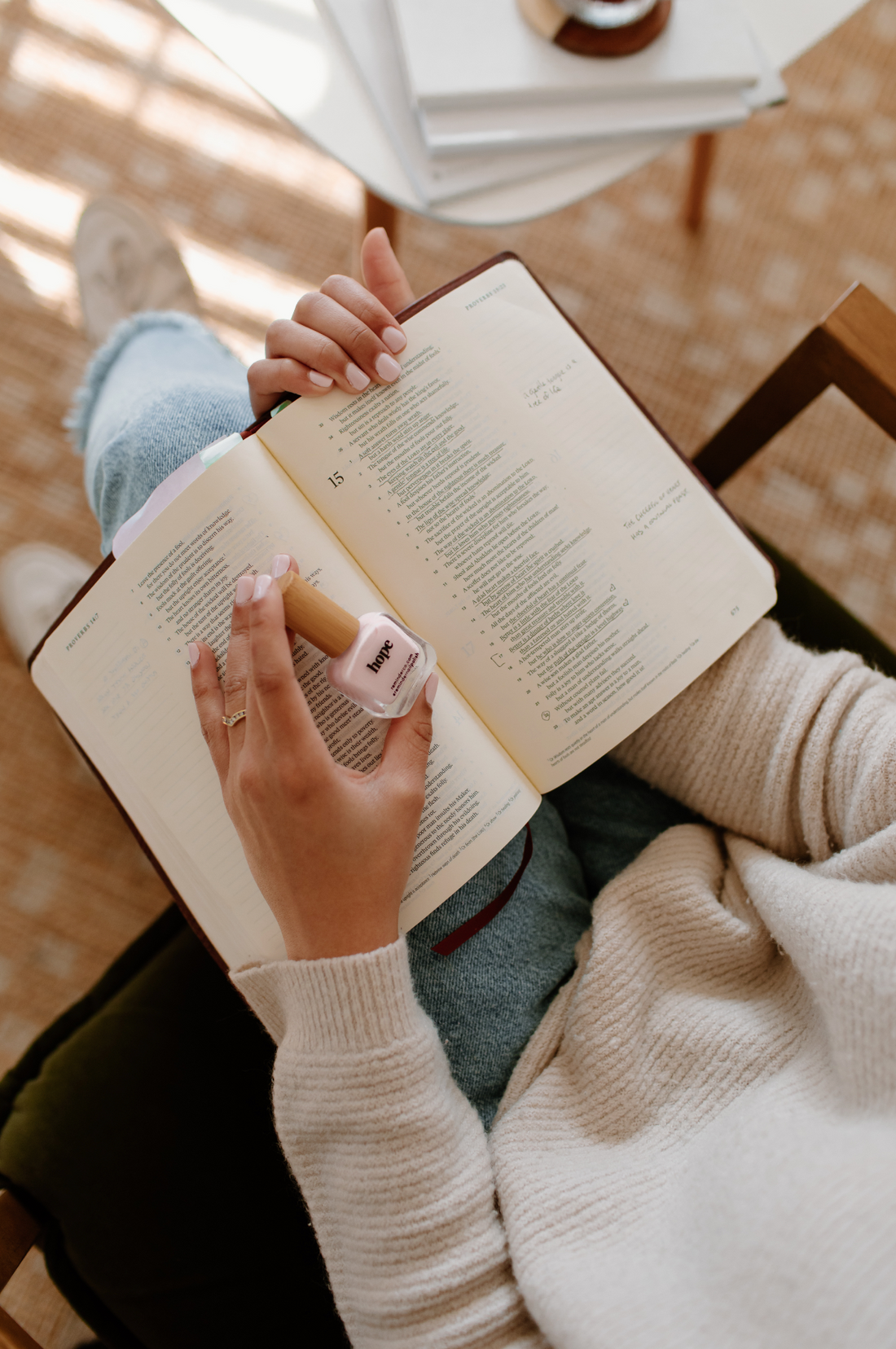 Each nail polish color includes a keepsake card with a Bible verse, devotional and worship playlist. So that your nails can be a reminder.